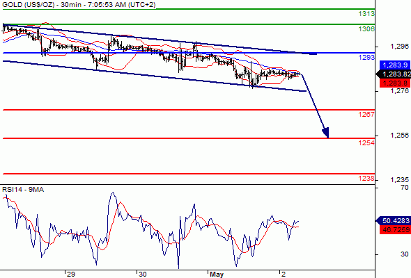 Comment: As long as the resistance at 1293 is not surpassed, the risk of the break below 1267 remains high. The metal keeps trading within a bearish channel.