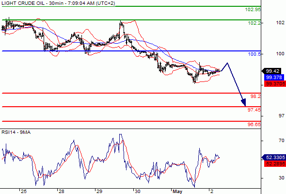 Our preference: Short positions below 100.5 with targets @ 98.2 & 97.45 in extension.