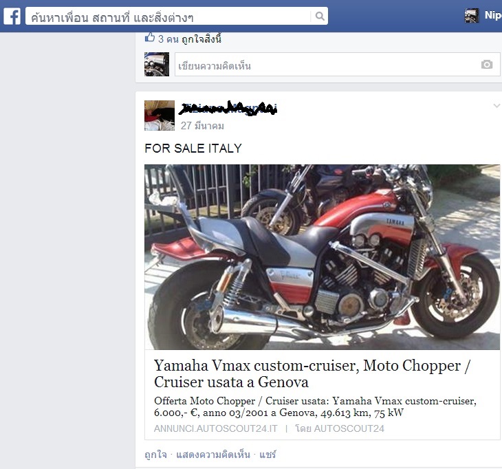 ผมเจอในเฟส เพื่อน V-Max ที่อยู่ในอิตาลี ราคา 6000 x 45 = 270,000 บาท ปี2001
