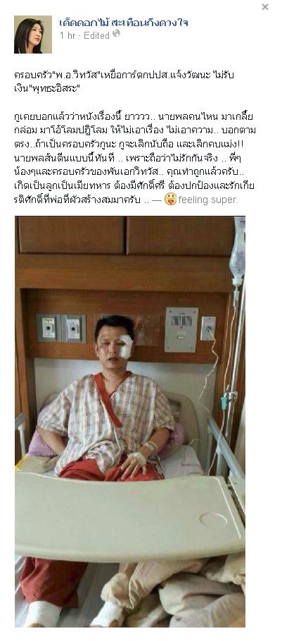 ขอแสดงความขอบคุณและชื่นชม ครอบครัว"พ.อ.วิทวัส"เหยื่อการ์ด กปปส.แจ้งวัฒนะ ไม่รับเงิน"พุทธะอิสระ" ..... ขอให้ชนะคดีค่ะ