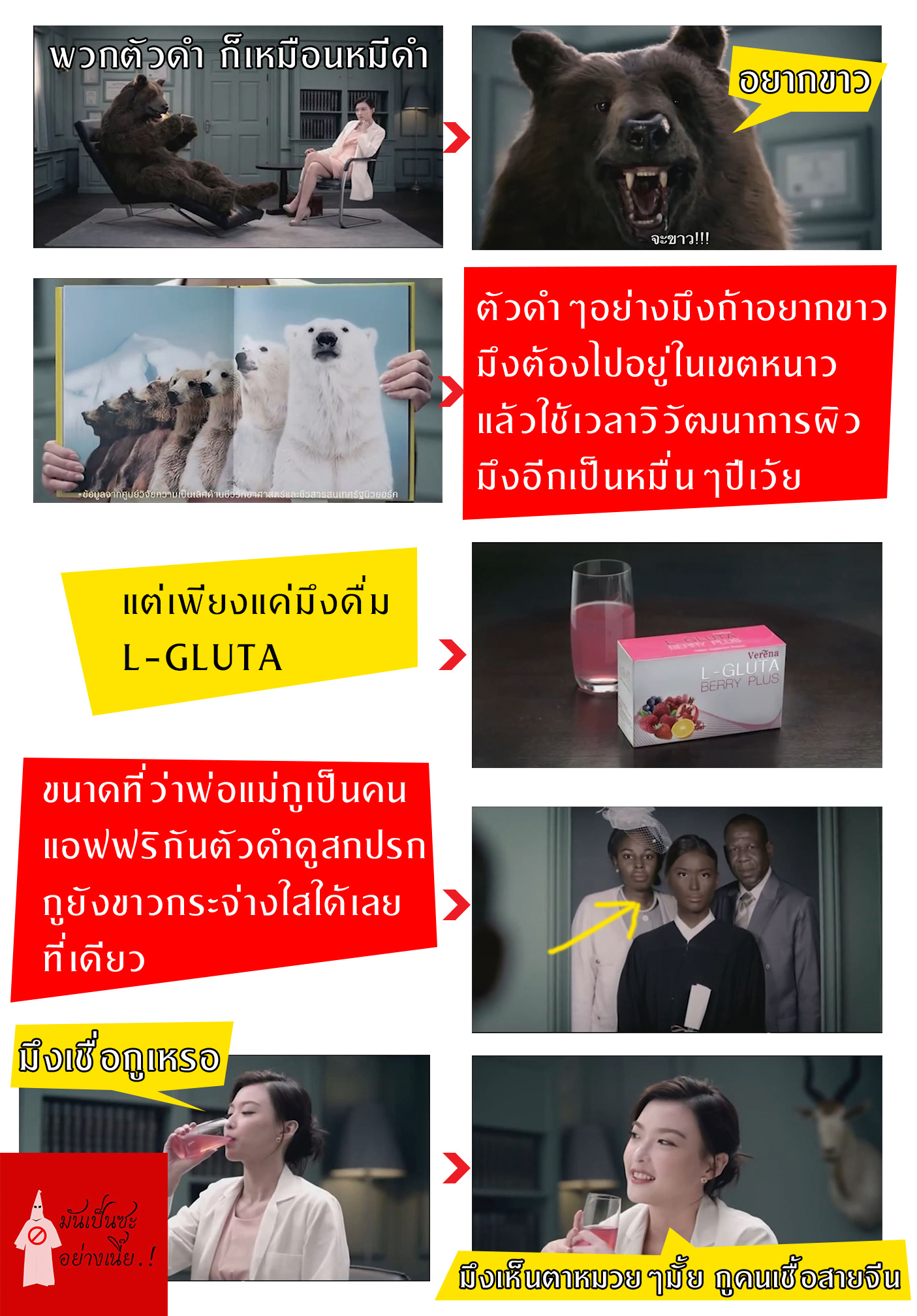 1. โฆษณาตัวนี้เหยียดผิวแบบในภาพนี้ ท่านคิดว่าจริงหรือไม่จริง