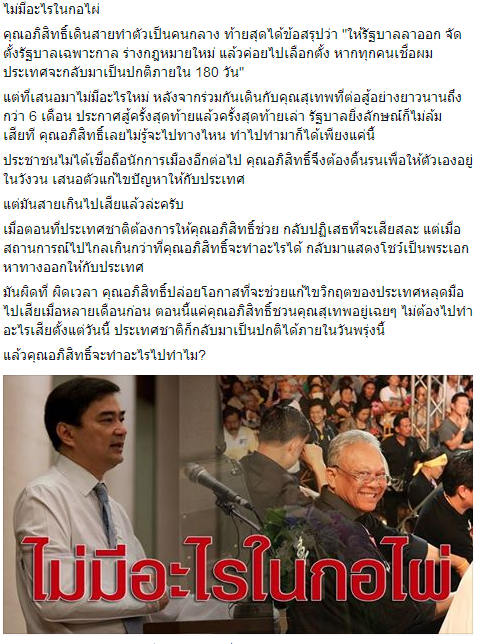 เมื่อประเทศชาติต้องการให้ช่วยคุณอภิสิทธิ์กลับปฏิเสธ แต่เมื่อสถานการณ์ไปไกลเกินกว่าจะทำอะไรได้ กลับอยากแสดงเป็นพระเอก