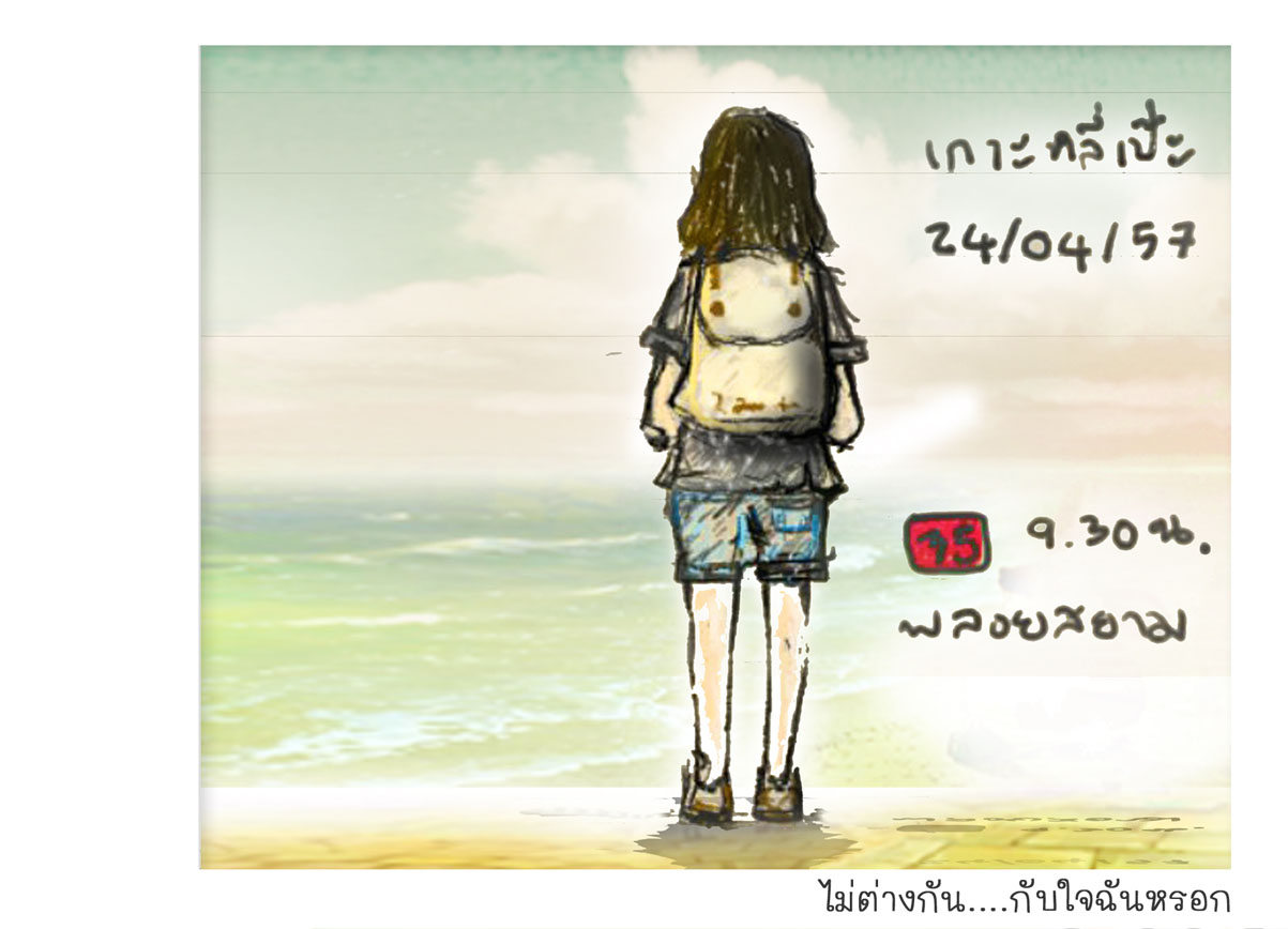ไม่ใช่ผู้หญิงคนแรกที่ผมเจอและคิดว่าน่ารักบนเกาะแห่งนี้ เธอไม่ได้ดูสวยไปกว่าสาวมาเลผิวขาว แต่งตัวเปรี้ยวๆ หรือฝรั่งผมแดงเลย แต่ที่สะดุดตาไปมากกว่าใครนั้นก็น่าจะเป็นดวงตาของเธอหลังจากที่ได้บัตรคิวเรือแล้ว ผมแอบยืนมองเธออยู่สักพัก เก้าอี้บนโป๊ะเรือ สามารถนั่งได้ทั้งสองฝั่ง