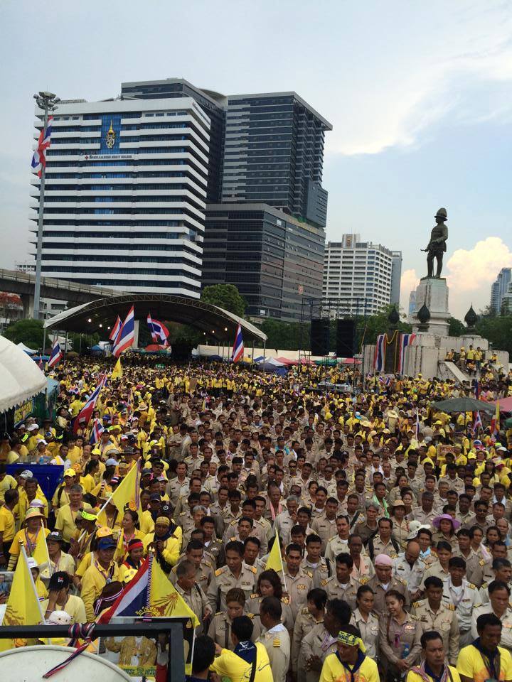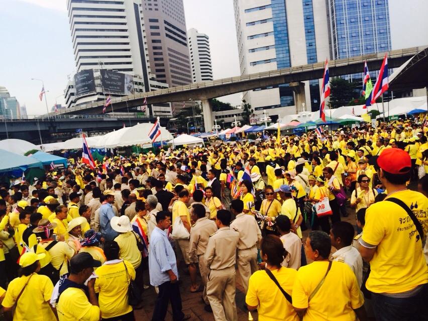เราเข้าใจว่า พระองค์จะเสด็จออกมหาสมาคมที่หัวหิน ไม่ได้เข้ามากทม.เลย แต่พอฟังเวทีม็อบนกหวีด พวกนั้นบอกว่าจะขนคนไปที่สนามหลวง ไม่ให้นายกถวายพระพรในหลวง (นี่ใยเจ๊ปองพูดนะ) ถ้านายกฯถวายพระพรในหลวง พวกนกห