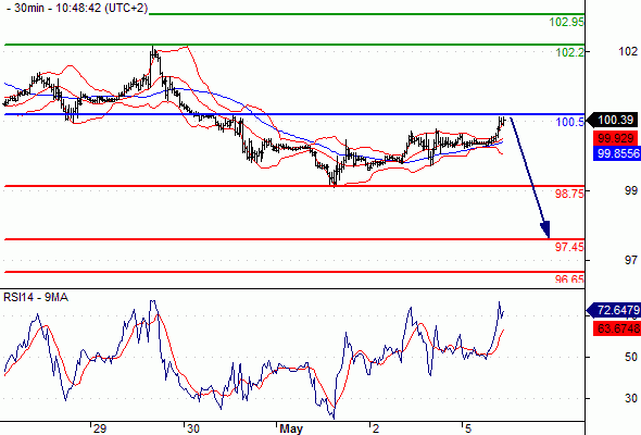 Most Likely Scenario: Short positions below 100.5 with targets @ 98.75 & 97.45 in extension.