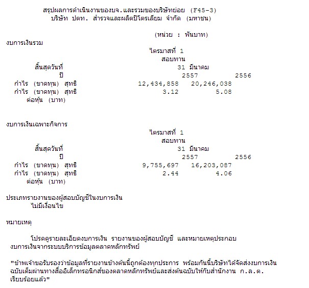 งบไตรมาส 1/57 PTTEP ใจไม่แข็งอย่าดู บ่องตง