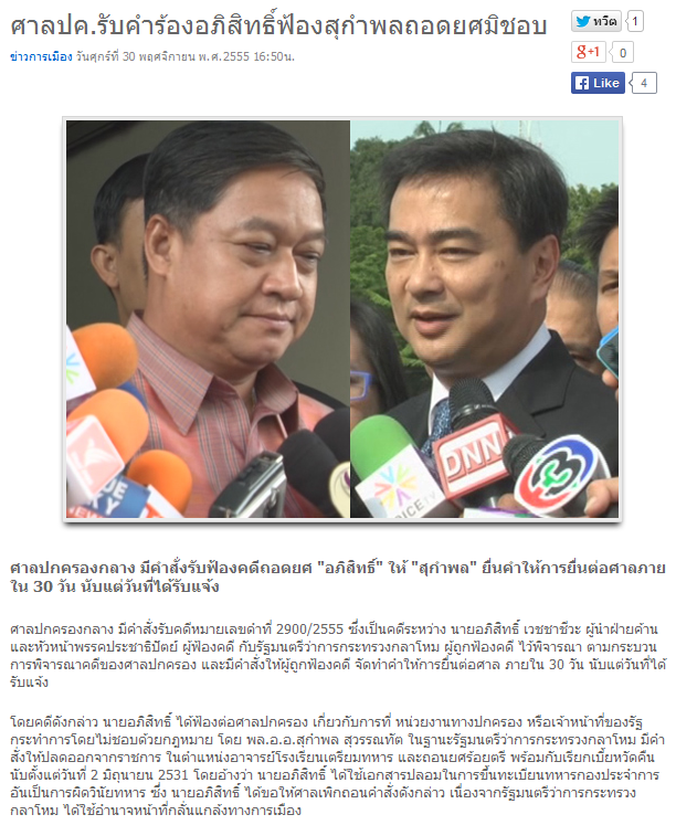 ข่าวที่สยดสยองที่สุดในรอบหลายปีที่ผ่านมา นายอภิสิทธิ์ จะฟ้อง ปปช และ ศาลปกครอง กรณีที่โดนถอดยศทหาร(อ้าวนึกว่าฟ้องไปแล้ว)