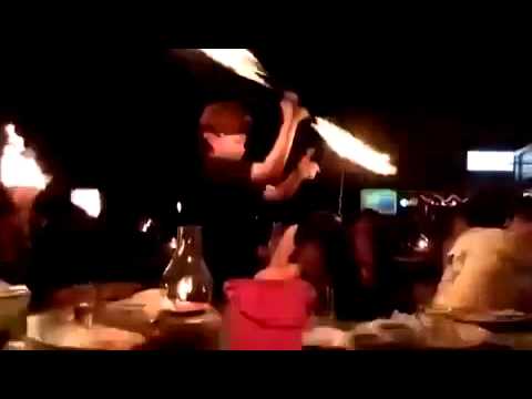 เมื่อการแสดงโชว์บริเวณหน้าหาดเริ่มต้นขึ้นพวกเรานั่งดูเพลิน ในขณะเดียวกันเราก็เริ่มแสบตาจากละอองเชื้อเพลิงที่เค้าใช้ชุบกระบองไฟ เราเริ่มก้มหน้าและไม่ได้ดูโชว์ สักพักมีเด็กทอมอ่อนประสบการณ์หนึ่งในทีมโชว์ เดินควงกระบองไฟเข้ามาเล่นใกล้ลูกค้า และควงกระบองไฟบนหัวน้องเพื่อนเราระยะห่างจะหัวประมาณครึ่งฟุต(พวกเราต่างคนต่างก้มหน้าหลบละอองเชื้อเพลิง) สักพักน้องเพื่อนร้องไห้ เพื่อนเราเลยสั่งให้เด็กทอมนั้นหยุดเล่นแล้วถอยออกไป น้องเพื่อนร้องไห้แล้วบอกว่ากระบองโดนหัว เช่นเดียวกับโต๊ะข้างๆที่ยืนยันว่าโดน แต่เด็กทอมยืนยันว่าไม่โดน