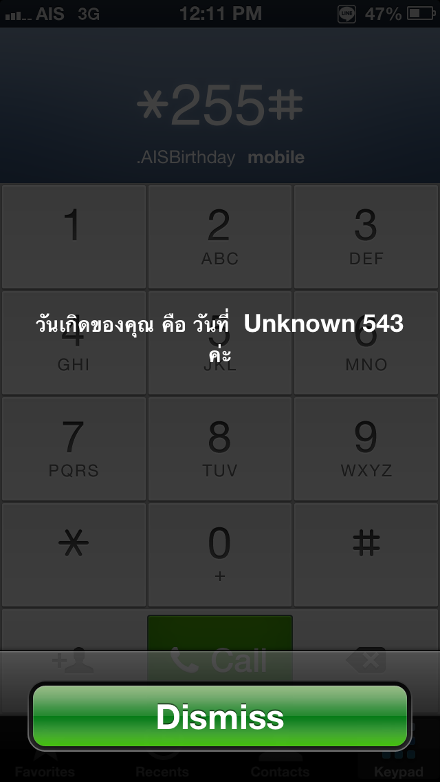ผมกด *255# แล้วมันขึ้นดังภาพ ไม่มีข้อมูลวันเกิด