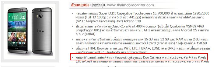 รบกวนช่วยอธิบายเรื่องกล้องหลัง HTC M8 ให้ด้วยค่ะ