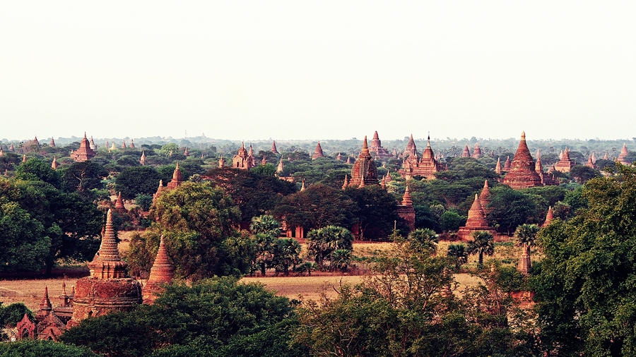 พุกามได้ชื่อว่าเป็นเมืองแห่งทะเลเจดีย์ หรือ ดินแดนแห่งเจดีย์สี่พันองค์ เพราะในสมัยรุ่งเรืองเคยมีเจดีย์มากมายถึง 4,446 องค์ ปัจจุบันเหลือแค่เพียง 2,217 องค์ เจดีย์แห่งแรกของพุกามคือ เจดีย์ชเวซีโกน สร้างโดยพระเจ้าอโนรธามังช่อ ปฐมกษัตริย์แห่งอาณาจักรพุกาม โดยธรรมเนียมการสร้างเจดีย์ เจดีย์องค์ใหญ่สุดจะเป็นเจดีย์ที่กษัตริย์ทรงสร้าง และองค์ที่มีขนาดเล็กถัดมา เป็นการสร้างโดยเหล่าขุนนาง อำมาตย์ ลดหลั่นลงมาตามบรรดาศักดิ์