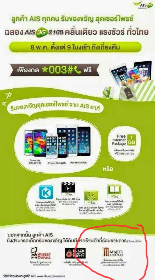 ที่บอกว่า พรุ่งนี้ลูกค้า AIS สามารถไปรับของขวัญตั๋วดูหนังฟรี 1 ที่นั่ง ช่วยบอกขั้นตอนหน่อยว่า ต้องทำอย่างไรบ้าง และมีจำนวนตั๋วแจกให้ทั้งหมดกี่ใบ ไม่อยากพลาดไปเสียเที่ยวอ่ะ พรุ่งนี้ตั้งใจจะรอที่หน้าโรงแต่เช้าเลย