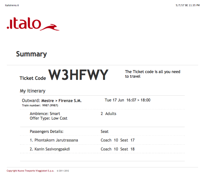 งงครับ สอบถามรถไฟของ italo (อีกเเล้ว)