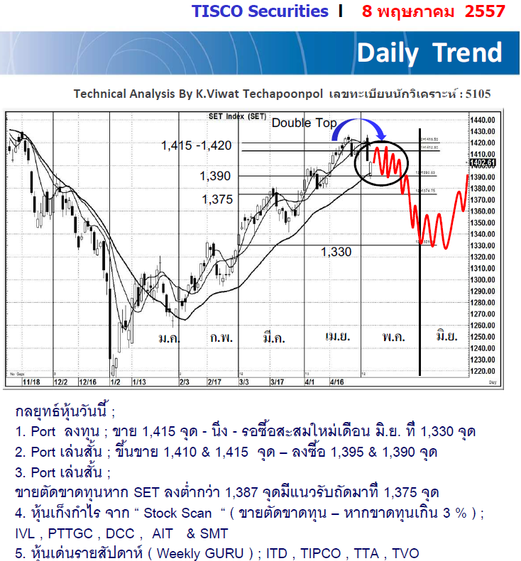 Tisco บอก ขาย 1,415 จุด - นิ่ง - รอซือ 1330