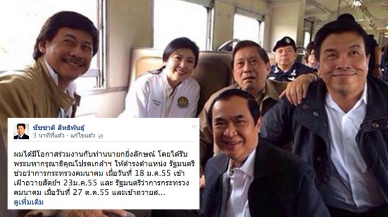 "ชัชชาติ สิทธิพันธ์ุ" รมว.คมนาคม โพสต์เฟซบุ๊กอำลา "ยิ่งลักษณ์ ชินวัตร" ลั่นยังเป็นนายกฯ ในใจตลอดไป...