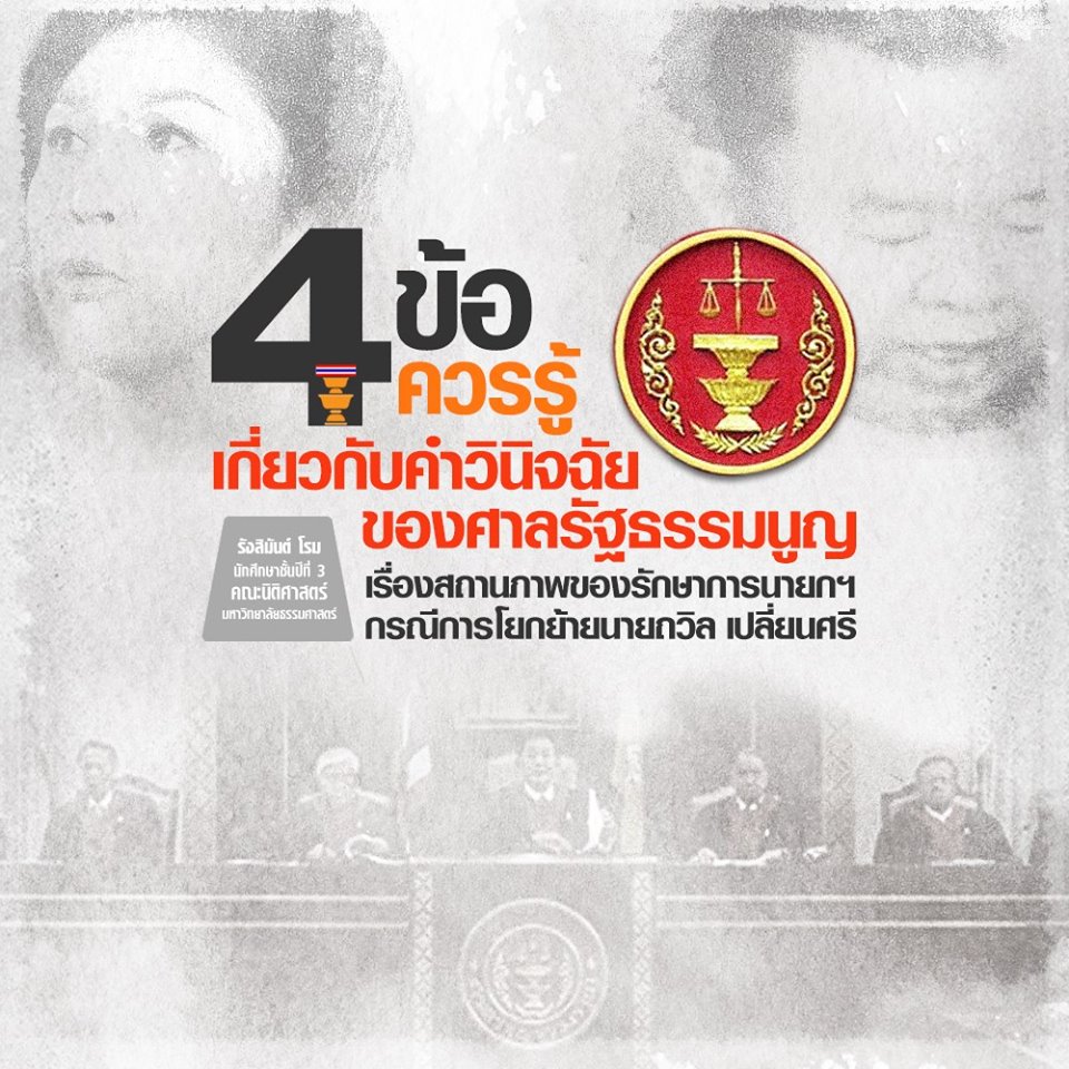 ๔ ข้อควรรู้เกี่ยวกับคำวินิจฉัยของศาลรัฐธรรมนูญเรื่องสถานภาพของรักษาการนายกฯ กรณีการโยกย้ายนายถวิล เปลี่ยนศรี