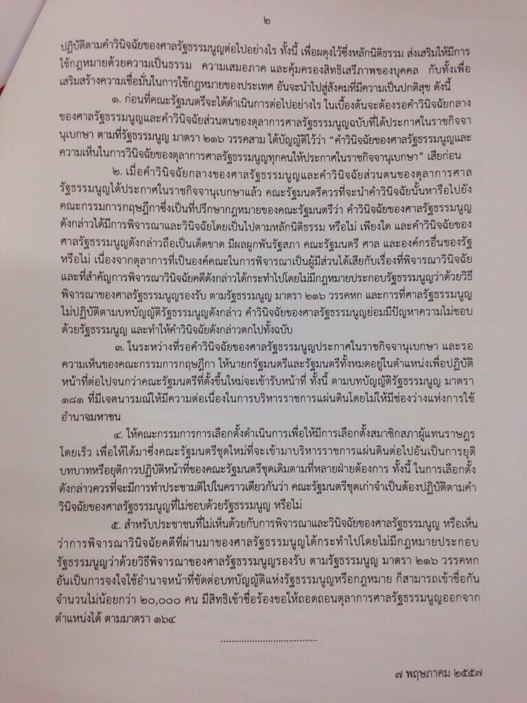 การตัดสินให้การเลือกตั้งเมื่อวันที่ 2 กุมภาพันธ์ 2557 โดยศาลรัฐธรรมนูญ ก่อนจะมีการตัดสินให้ ผมเป็นประชาชนคนธรรมดา ดูสื่อทีวี ยังไม่เชื่อว่าจะตัดสินเป็นโมฆะ (ยังไม่มั่นใจ100เปอร์เซ็นต์) แต่ฝ่ายพรร