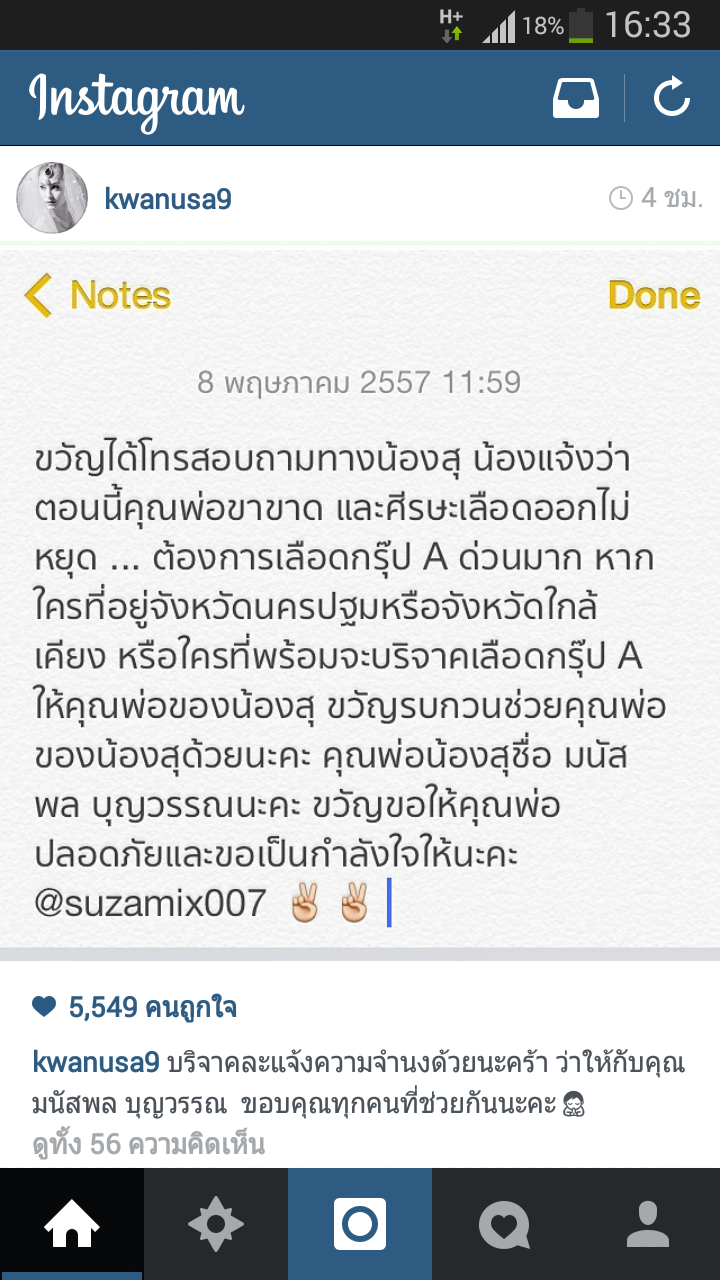 จากไอจีน้องขวัญ ขอความช่วยเหลือบริจาคเลือดกรุ๊ป A