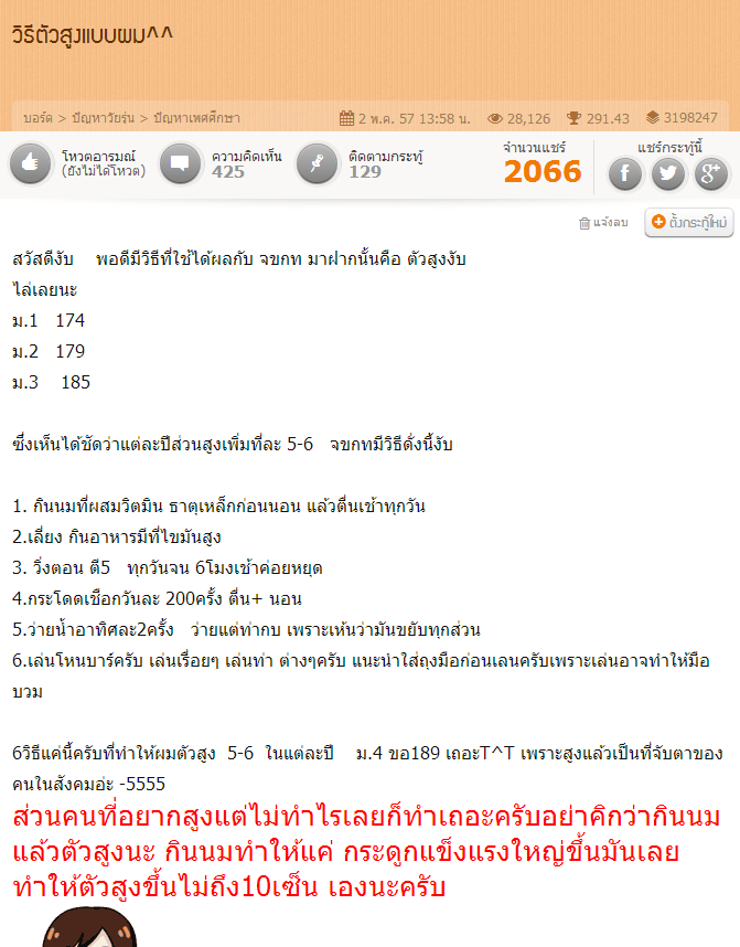 สวัสดีครับวันนี้ ผมได้เห็นกระทู้หน้าวอลเฟสบุ๊ค เห็นเกีย่วกับวิธีทำให้สูงเลยสนใจจึงเข้าไปดู