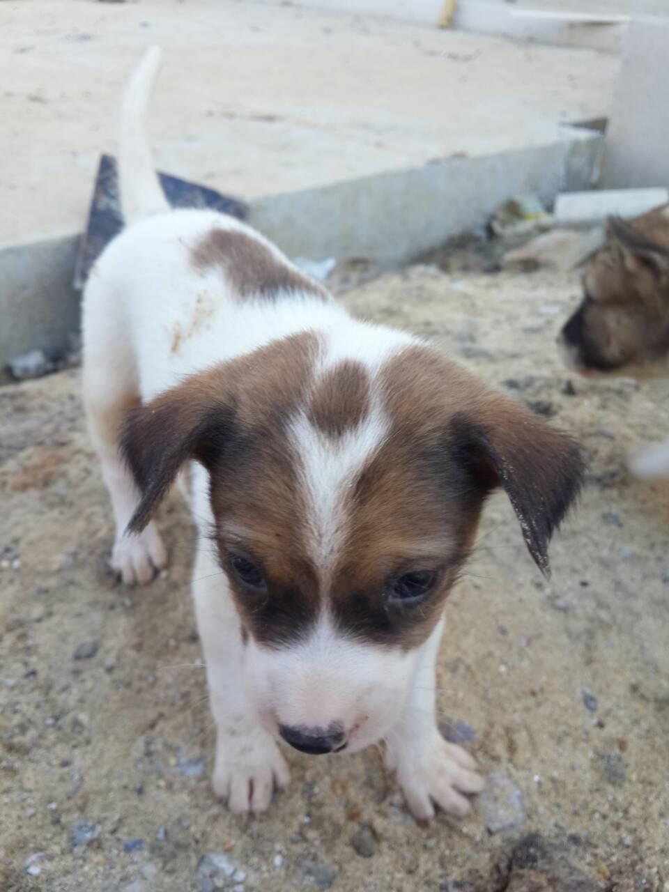 ปกติที่บ้านก็มีสมาชิกเยอะ หลากหลายสายพันธุ์อยู่แล้ว แต่ทุกตัวเป็นตัวเมียหมดเลย แล้วพอดีหมาบ้าเพื่อนเขาคลอดลูกออกมาเยอะ แจกไม่หมดเลยให้เรามาช่วยเลี้ยงสุดท้ายในครอก ตอนนี้อายุประมาณสามเดือนเห็นจะได้ แ
