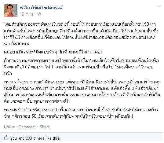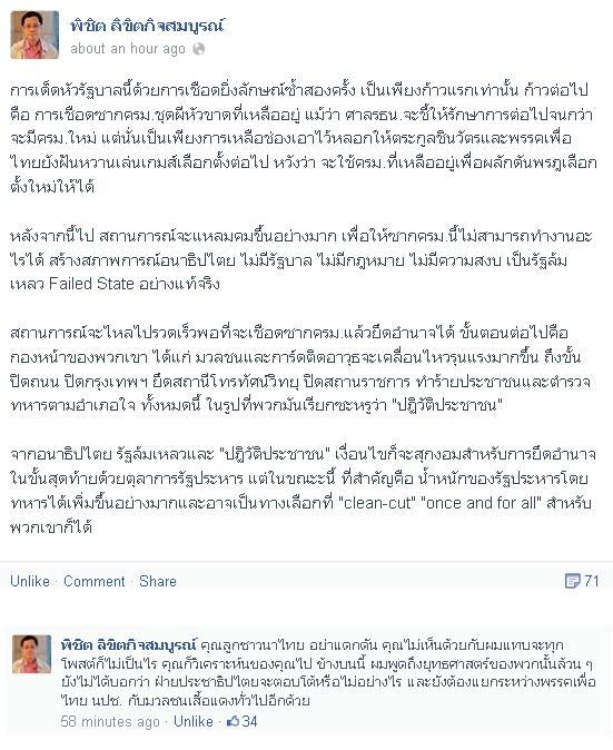 อ.พิชิต วิเคราะห์ในมุมการคิดของฝ่ายอำมาตย์อำนาจนอกระบบ
