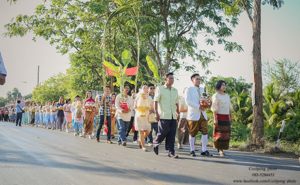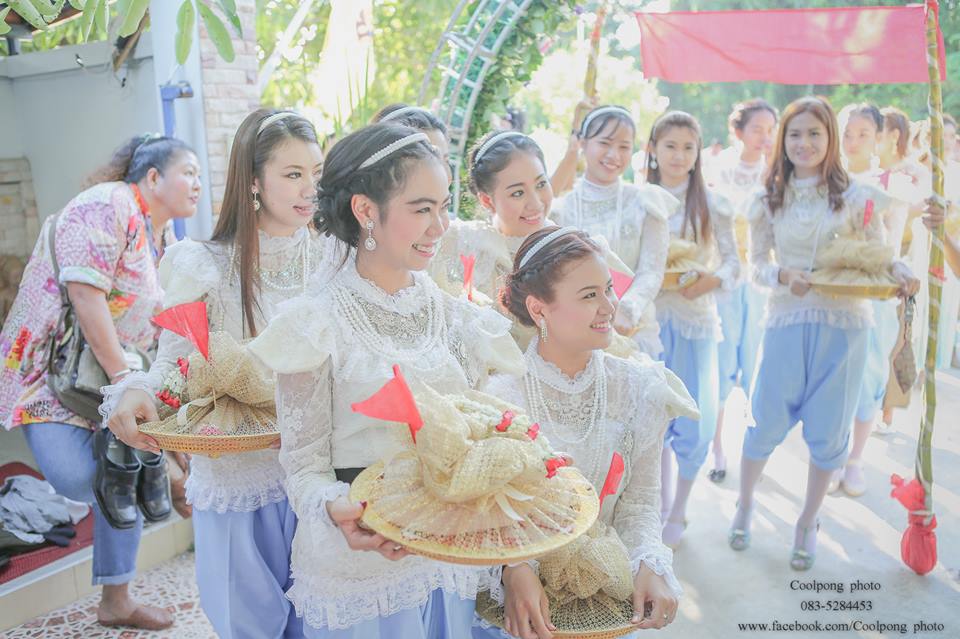 ชุดไทยในขบวนเช้างานแต่งงาน