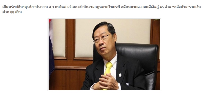 “สุรชัย”ประธาน ส.ว.คนใหม่รวย 166 ล้าน / สำนักข่าวอิศรา (ข่าวแปะ)
