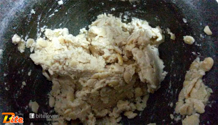 เริ่มต้นด้วยการโขลกเต้าเจี้ยวขาว ภรรยาบอกว่าให้ใช้เครื่องปั่นเลยจะได้ละเอียดและเสร็จเร็ว ๆ แต่ต้นฉบับที่คุณแม่เคยทำให้ทานนั้นใช้วิธีการโขลกครับ ครกที่ใช้โขลกอันนี้ก็เป็นของคุณแม่ครับ ผมก็เลยยืนยันที่จะใช้วิธีสุดคลาสสิค นั่นก็คือโขลกครับ ขอบอกว่าเมื่อยแขนมาก แถมไม่ละเอียดอีกด้วย เต้าเจี้ยวเป็นเม็ด ๆ เพียบเลย