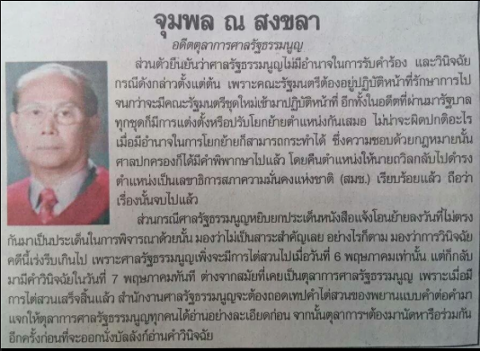 ศาล รธน.ไม่มีอำนาจในการรับคำร้องและวินิจฉัยกรณีดังกล่าวตั้งแต่ต้น
