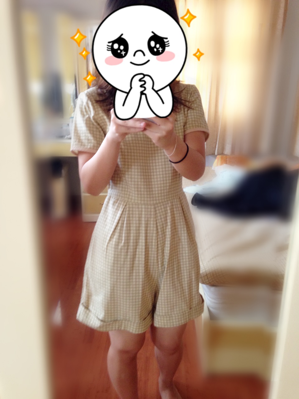 3.จั้มสูทลายตารางเล็กๆ สีเหลืองมัสตาท ใส่แล้วน่ารักมากกค่ะ