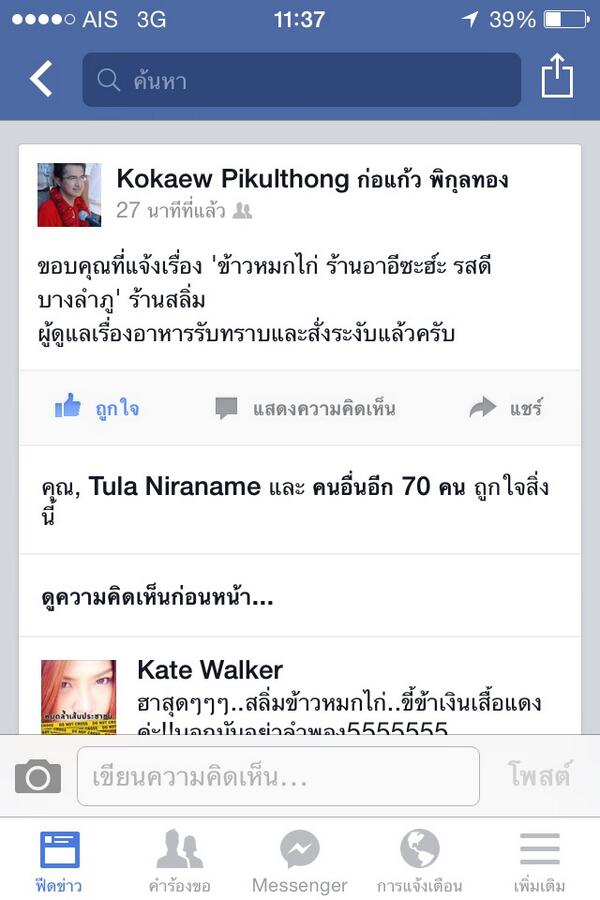 และ โพสท์เฟซบุ๊คว่า ร้านอาอีซะฮ์ะ รสดี บางลำภู ได้ถูกผู้ดูแลเรื่องอาหาร