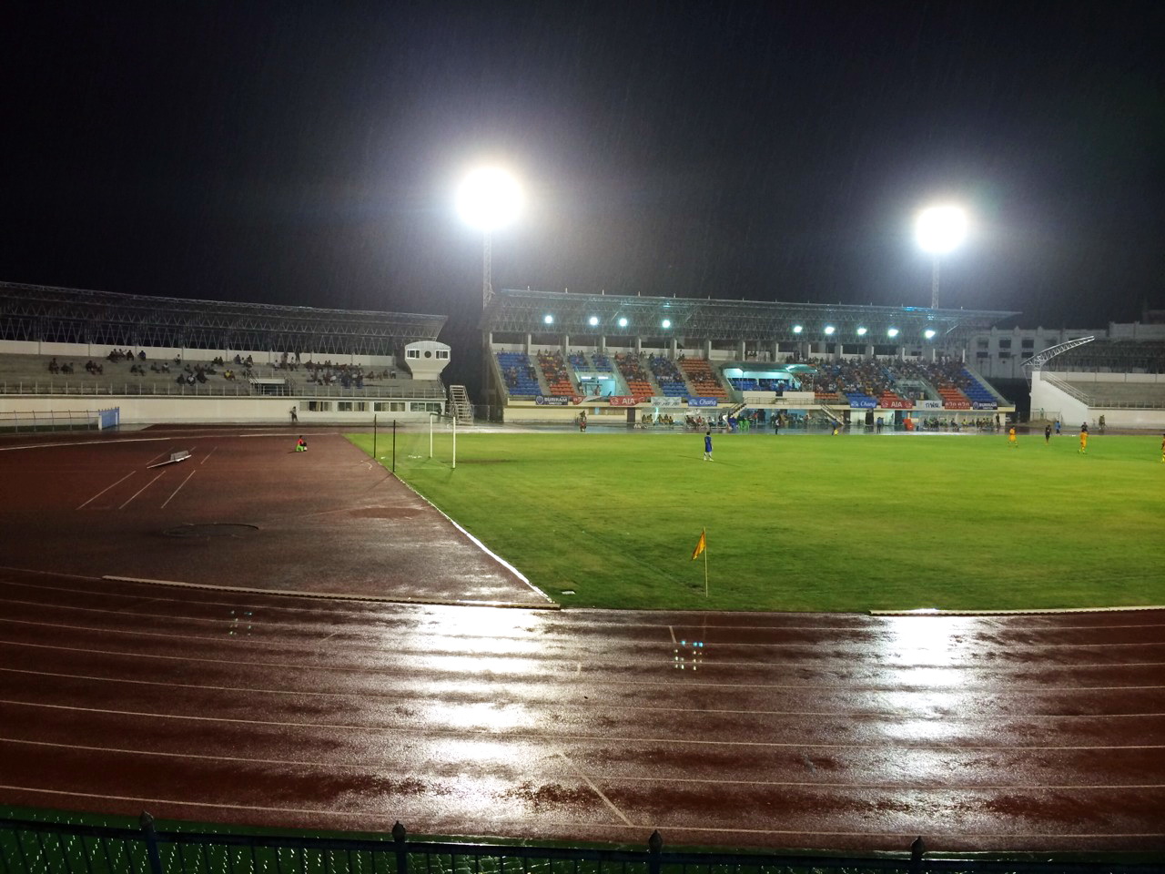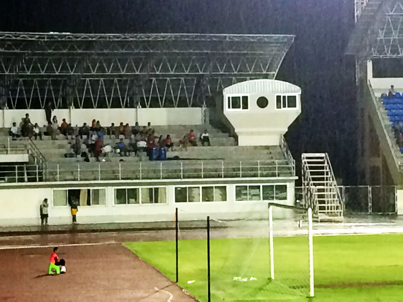 แล้วฝนตกครับ ต้องวิ่งหลบมาอัฒจรรย์ฝั่งมีหลังคา