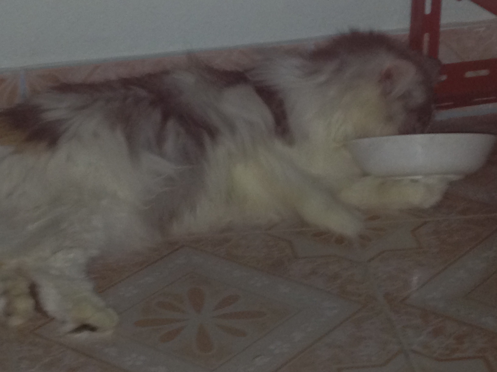 แมวสามสีที่บ้านผม เป็นแมวที่กินเก่งมาก คือหิวได้ทุก 2-3 ชั่วโมง เวลาเจ้าตัวเล็กมาเรียก ผมจะตักอาหารเม็ดให้ 1 ช้อนเสมอ เพราะเป็นปริมาณที่กินแล้วพอดี (คิดว่าแมวอิ่มพอดีนะคับ) ซึ่งปรกติเจ้าตัวเล็กจะเหลือ