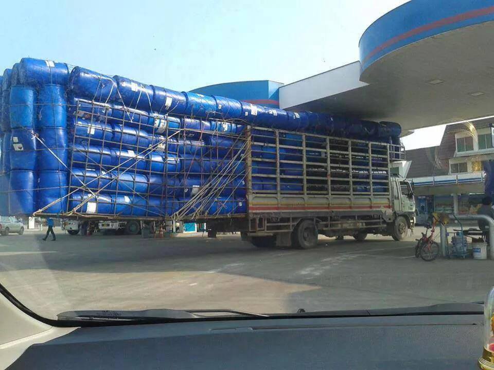 ถังเหล็ก 100ใบ (แถวละ4x5ชั้น x5แถว) หนักถังละ 20 +กากครึ่งกิโล 21 (ปกติถังเหล็ก น้ำหนัก 18-22กิโล ตามคุณภาพที่กำหนดเอาไปบรรจุของแต่ละชนิด )