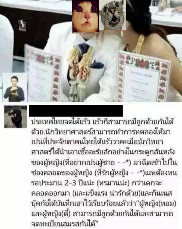 แท็คกฎหมายเพราะเรื่องจดทะเบียนได้ ซึ่งมันไม่เป็นความจริงค่ะ เท่าที่ตามข่าวล่าสุดมาต้องรอไปก่อน...