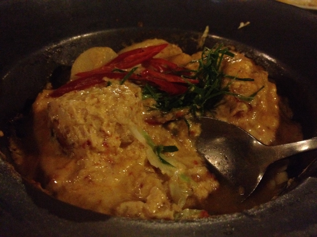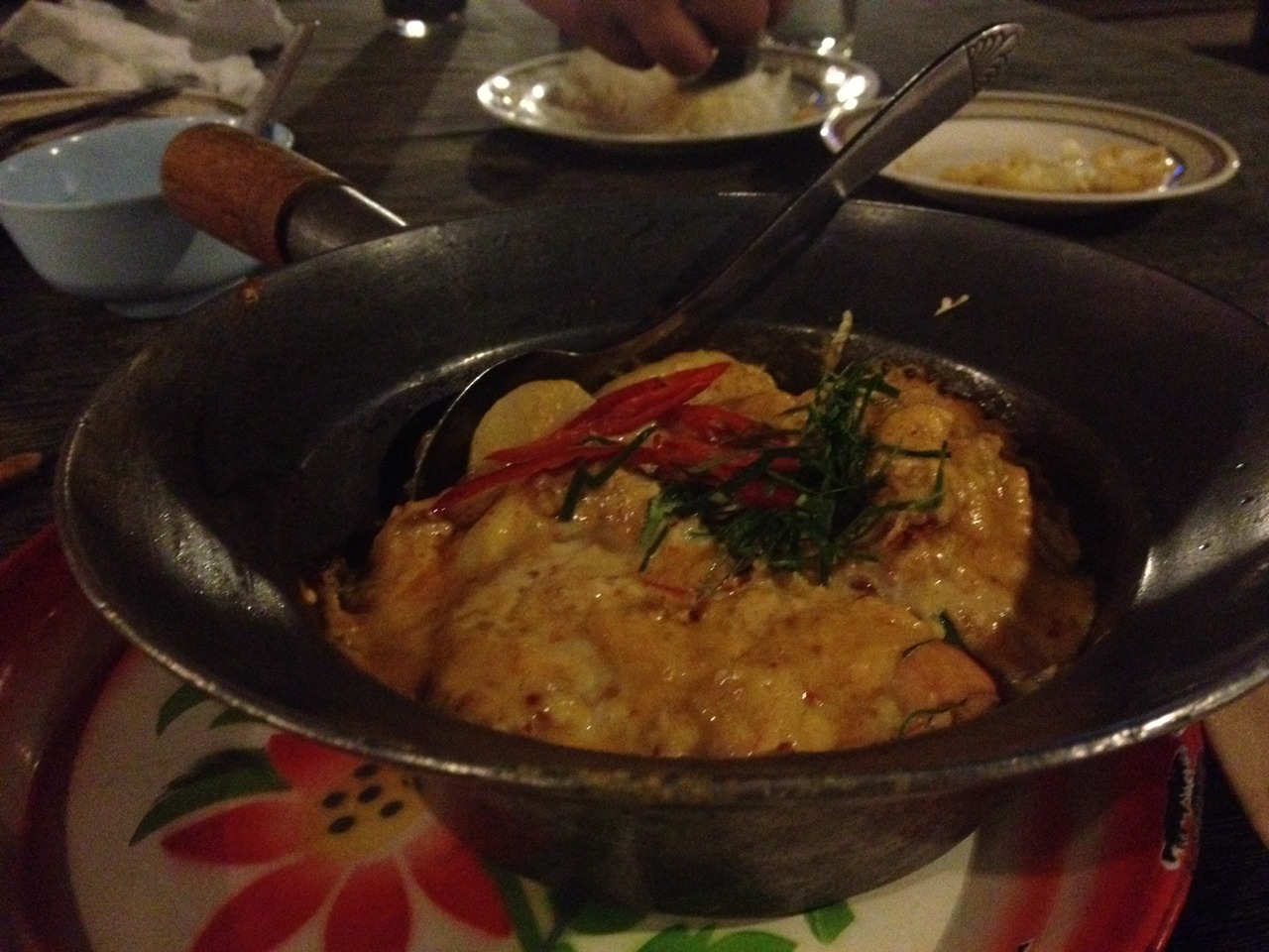 หมึกกล้วยตัวใหญ่ กุ้ง เนื้อปลา โดยรวมแล้วแฉะไปหน่อยค่ะ รสชาติโอเค มันๆกลมกล่อม