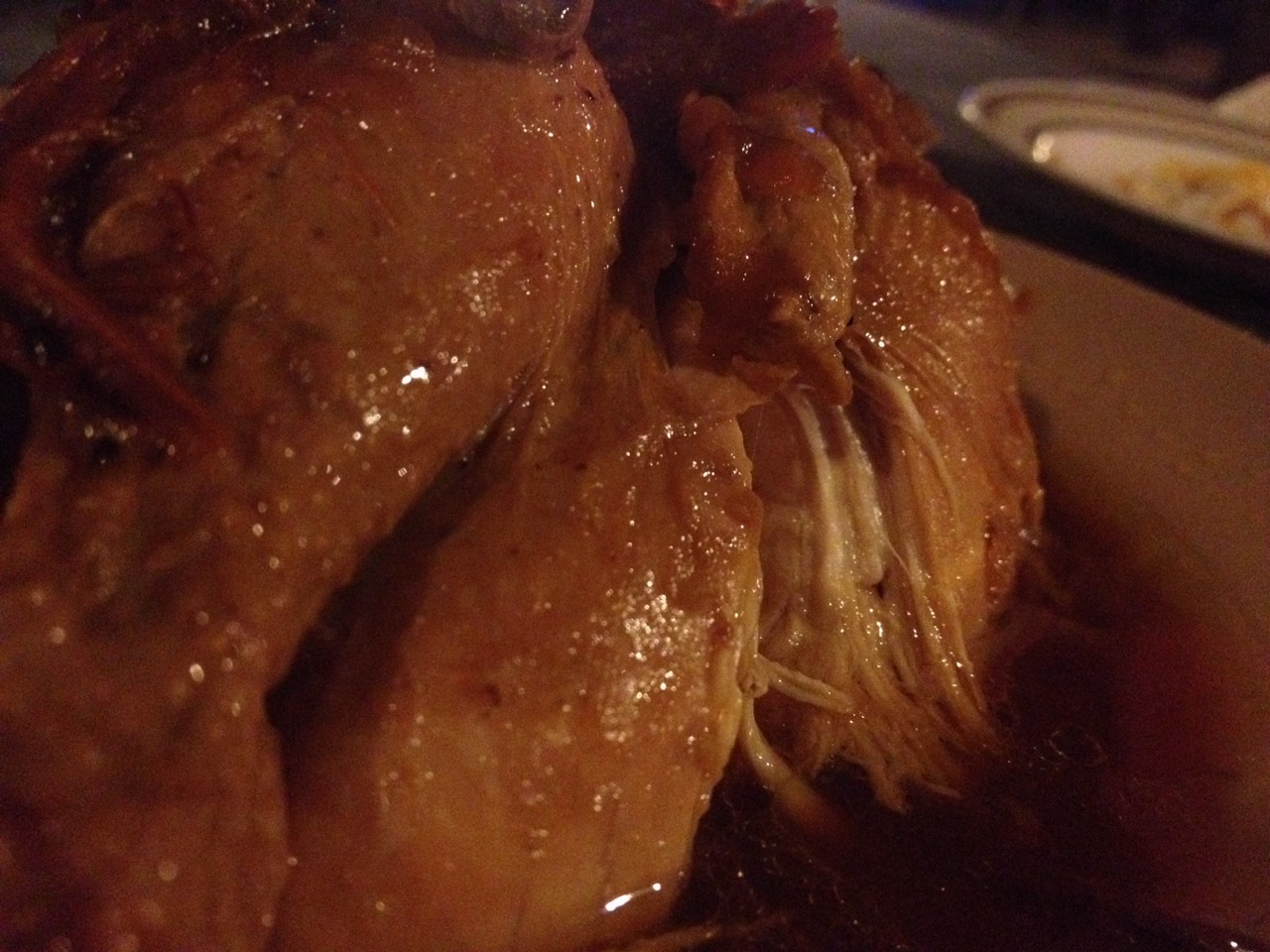 ไก่หนุ่ม(หรือสาว)อบจนนุ่ม ออกรสหวานๆ โรยด้วยหอมแดงทอด เสริฟพร้อมสลัดผักกรอบๆ เข้ากันดี