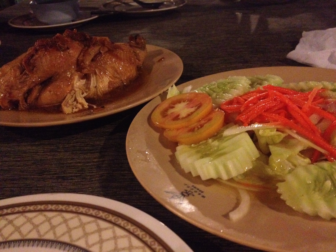 จานแรก เมนูแนะนำร้านเค้าค่ะ ไก่อบ สลัดผัก