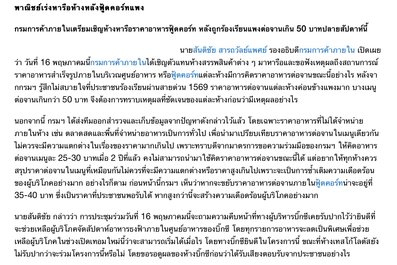 พาณิชย์เร่งหารือห้างหลังฟู้ดคอร์ทแพง