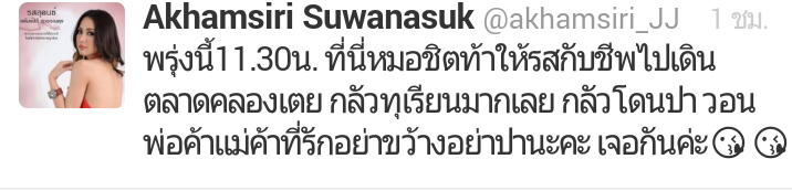 พรุ่งนี้เจอ จั๊กจั่น กับ เจมส์ได้ที่ตลาดคลองเตยนะคะ แฟนคลับ มาเดินตามคำท้าของที่นี่หมอชิตค่ะ