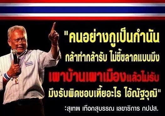 ฟังที่ ศอรส ประกาศ ผมอ่านยุทธศาสตร์ออกเลย ให้ประชาชนไปร้องทุกข์ แจ้งความ แล้วเอามาดำเนินคดีกับ กปปส. (ซึ่งพนันได้เลยว่า อีก 50 ปี ก็ยังไต่สวนสอบสวนทำสำนวนกันไม่เสร็จ) แทนที่จะจัดการกับคนทำผิดกฏหมา