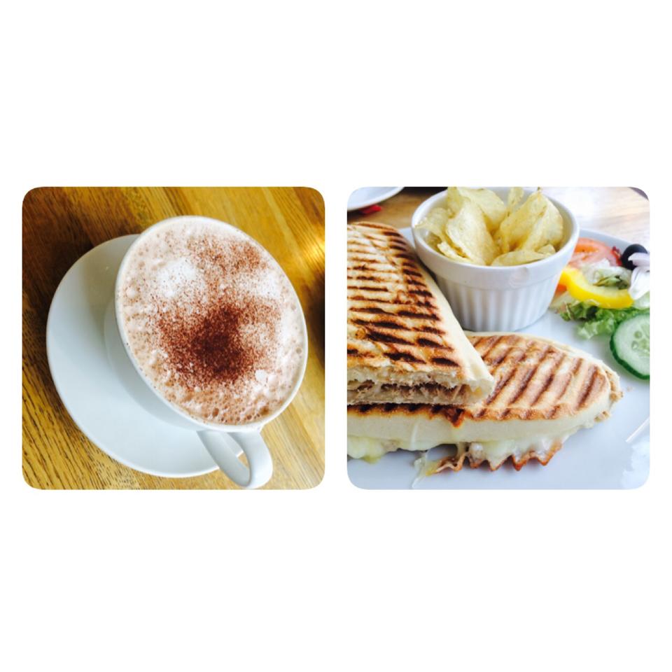 แต่ในภาพเป็น Tuna Melt ค่ะ จะมีชีสในนั้นด้วย กัดทียืดเชียว เราทานกับช๊อกโกแลตร้อนในตอนเช้า