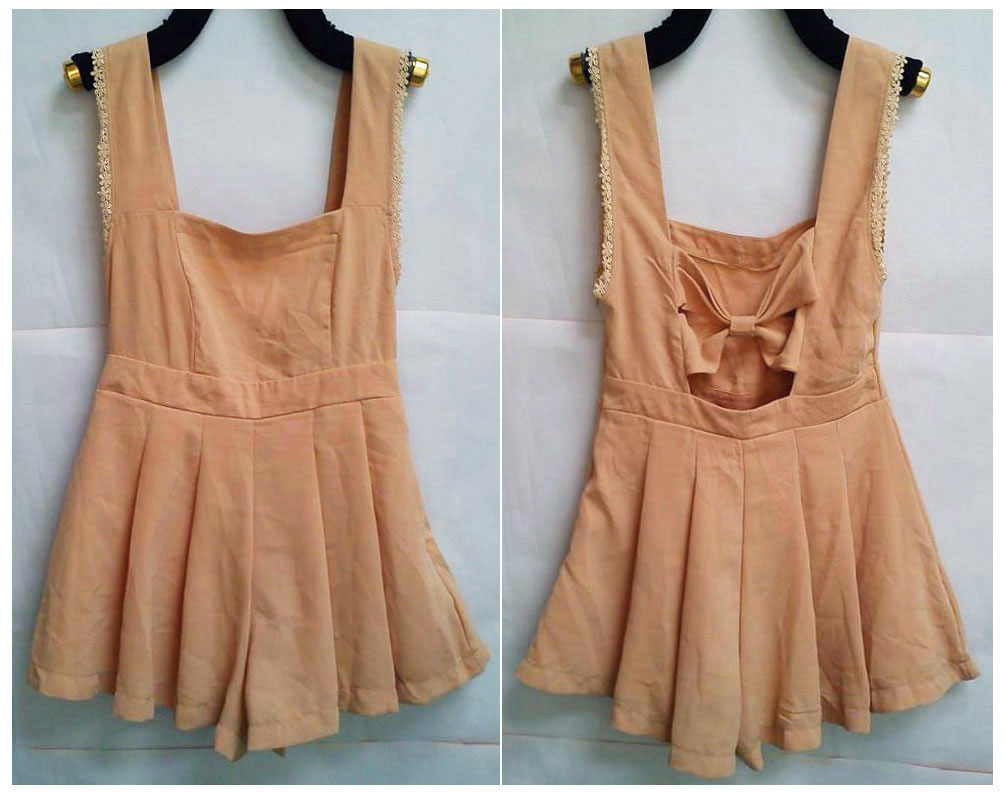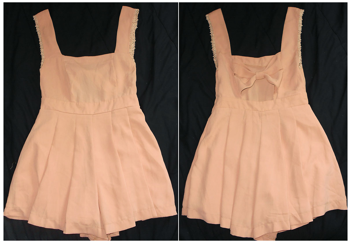 new ชุดเพลสูทจีบรอบ เว้าหลังแต่งโบว์ งานสวยมากค่ะ อก 32-34 อว 26 สะโพก 36-38 ยาว 29 นิ้ว
