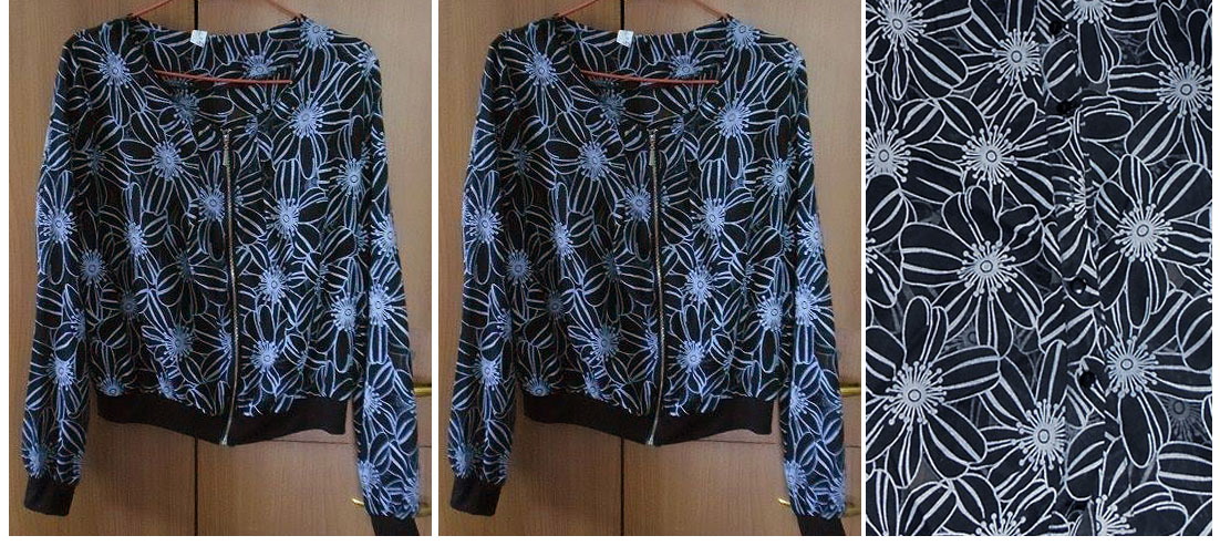 เสื้อคลุมผ้าแก้วดอกไม้ มีสีขาวกับสีดำ ซิปผ่าหน้า อก 32-35 เสื้อยาว 22 นิ้ว