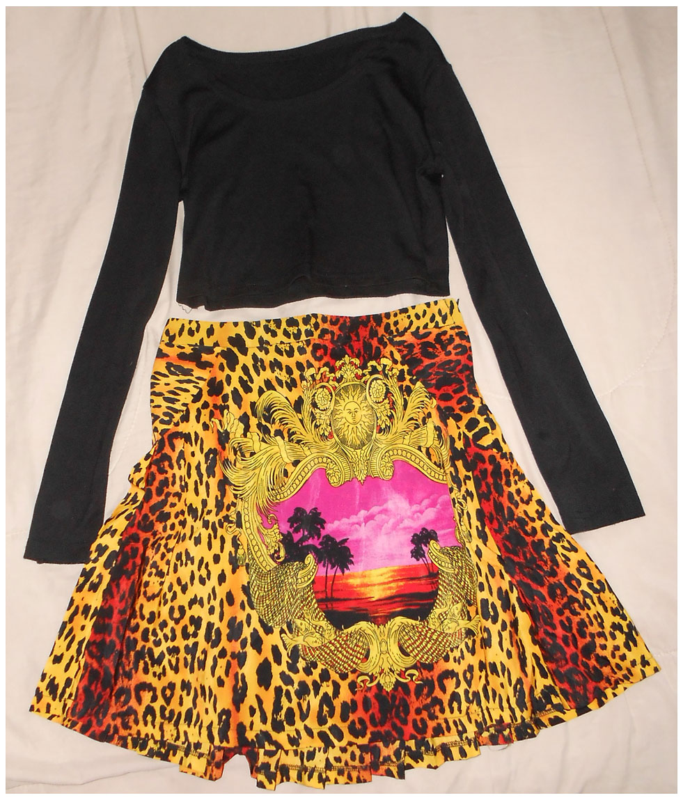 new set เสื้อ+กระโปรง ติดป้าย versace h&m เอว 26 สะโพก 36 ยาว 17 นิ้ว (กระโปรงของใหม่/เสื้อมือสอง)