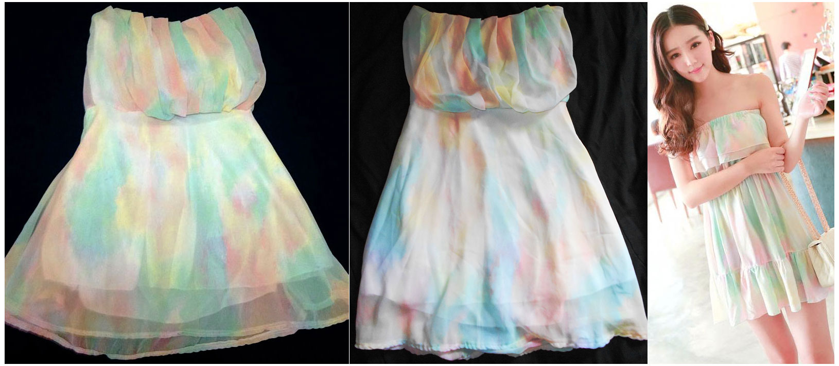 new เดรสเกาะอกสีรุ้ง จับจีบหน้าอก งานสวยค่ะ ด้านหลังเป็นซิป อก 32-34 ยาวประมาณ 24 นิ้ว