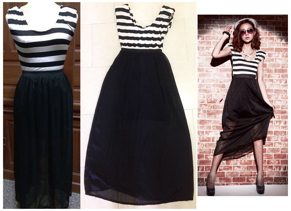 maxi dress ตัดต่อกระโปรงชีฟองสีดำ เหมือนที่นางแบบใส่ค่ะ อก 32-36 เอว 24-34 ยาว 48 นิ้ว