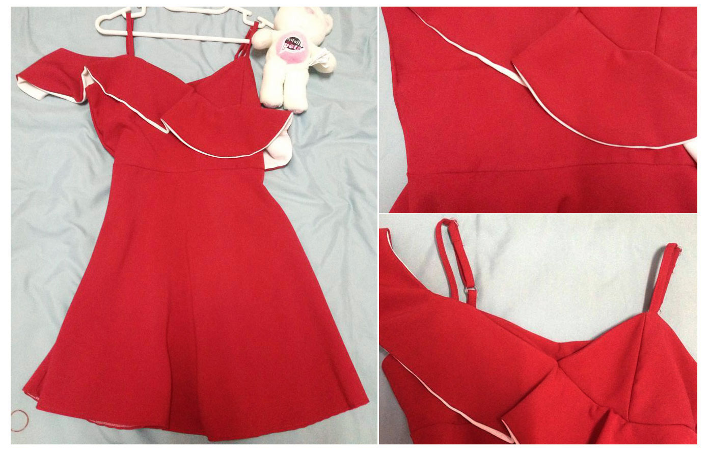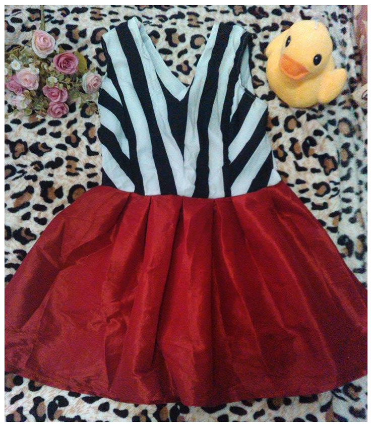 new เดรสตัดต่อกระโปรงสีแดง งานสวยมาก ได้มาใหญ่ไป อกไม่เกิน 36 เอว 28 สะโพกฟรี ยาว 30 นิ้ว