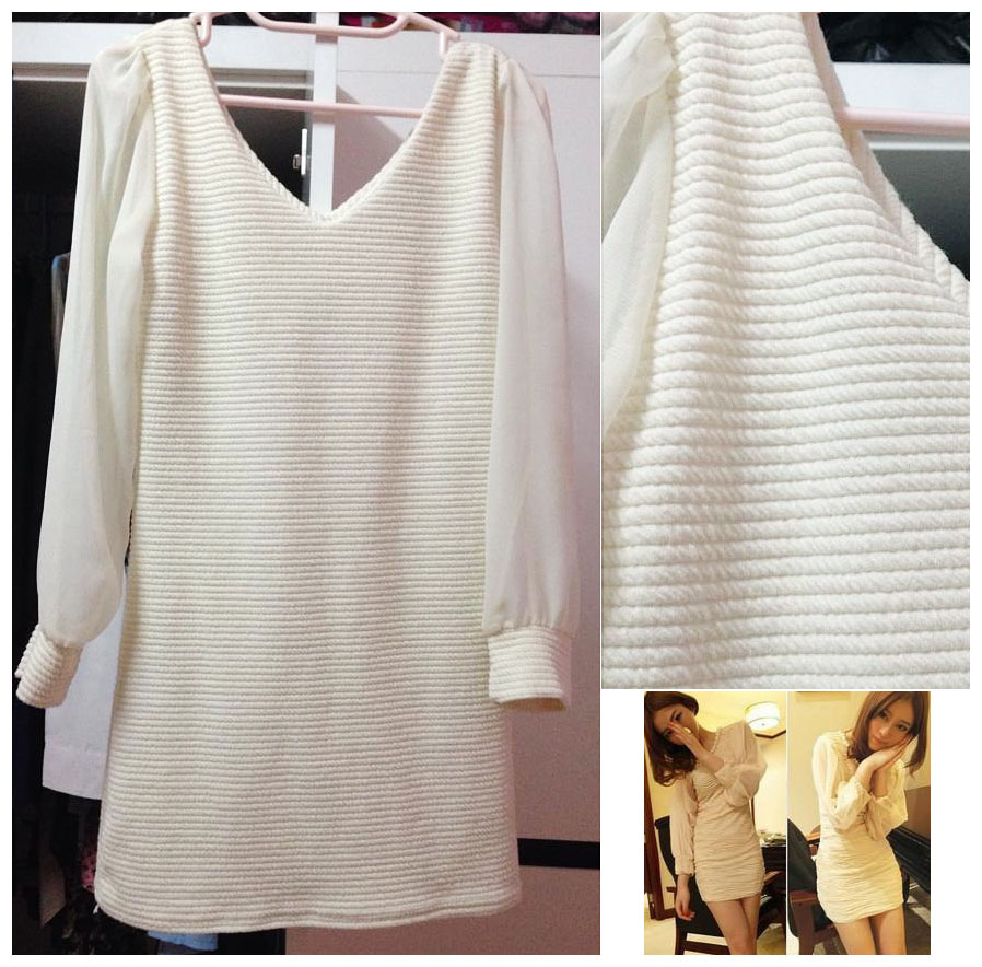 new เดรสผ้ายืดสีขาว งานสวยมาก ผ้าหนาค่ะ ซื้อ 650- อก 34 เอว 30 สะโพก 36 ยาว 30 นิ้ว