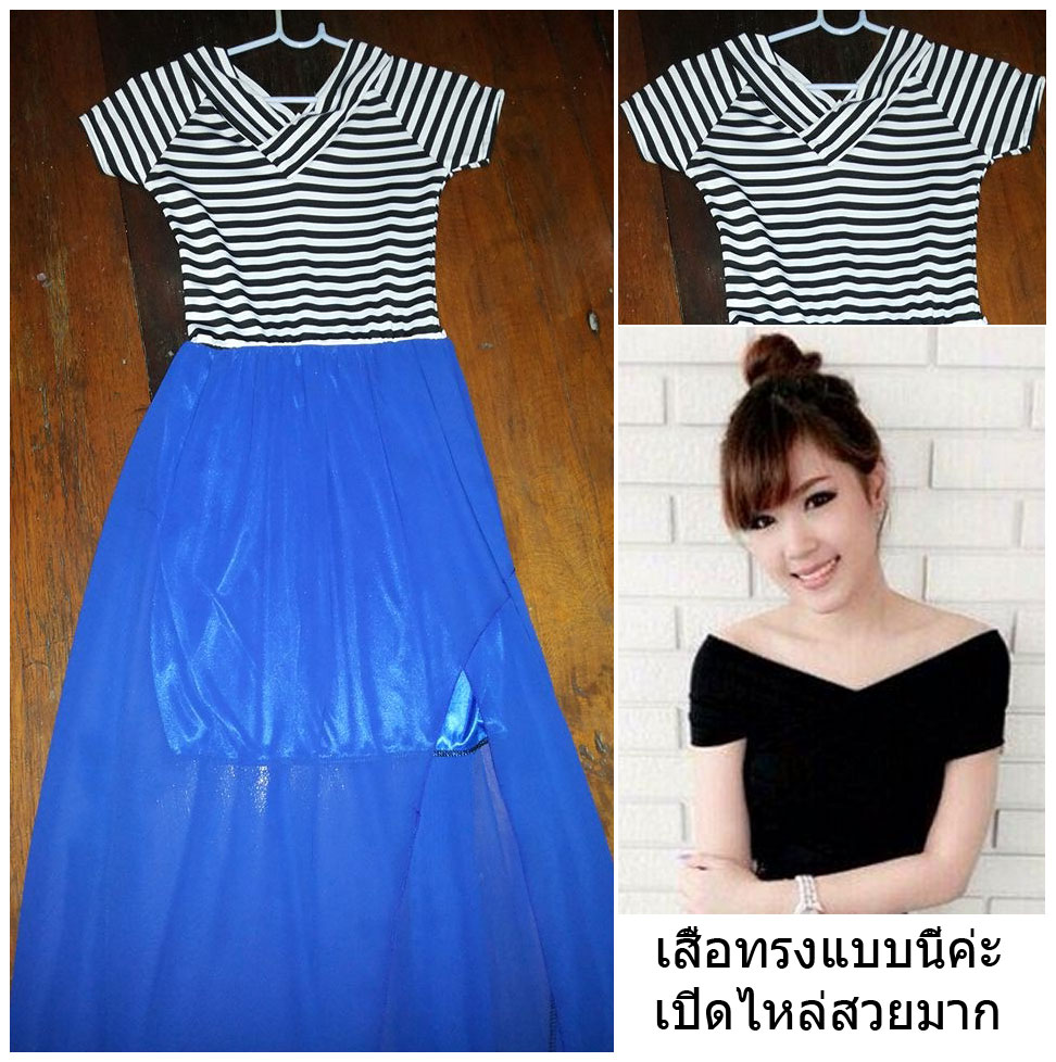 new เดรสปาดไหล่ตัดต่อกระโปรงยาวชีฟอง ตัวนี้ใส่ออกมาทรงสวยมากเลยค่ะ อก 32-34 เอว 25-30 ยาวประมาณ 50 นิ้ว